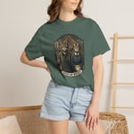 This heavyweight, garment-dyed tee carries a vintage, tavern-ready vibe. A muted, hand-illustrated panel on the chest features two stern, fox-masked figures framed by a rustic backdrop and a banner that reads “American Whiskey.” The soft, broken-in dye and substantial cotton body give the shirt a lived-in feel from the first wear. It layers easily under a flannel or wears solo with worn denim for nights at the distillery, whiskey tastings, or slow evenings with friends. The relaxed cut and substantial weight make it feel dependable — like a favorite barstool you keep coming back to.