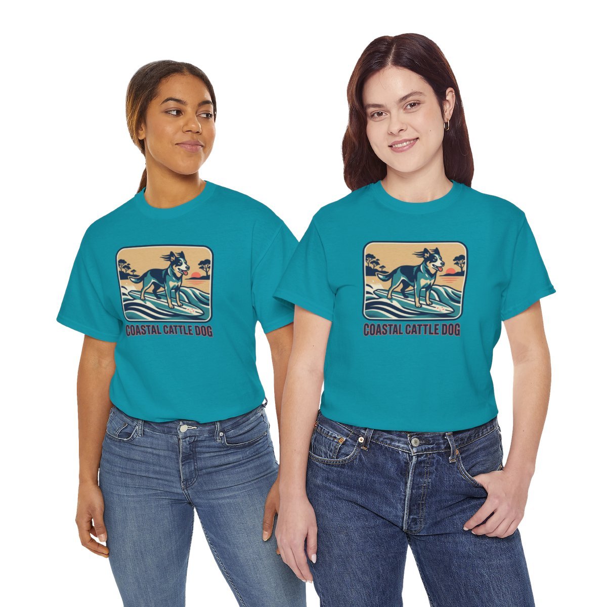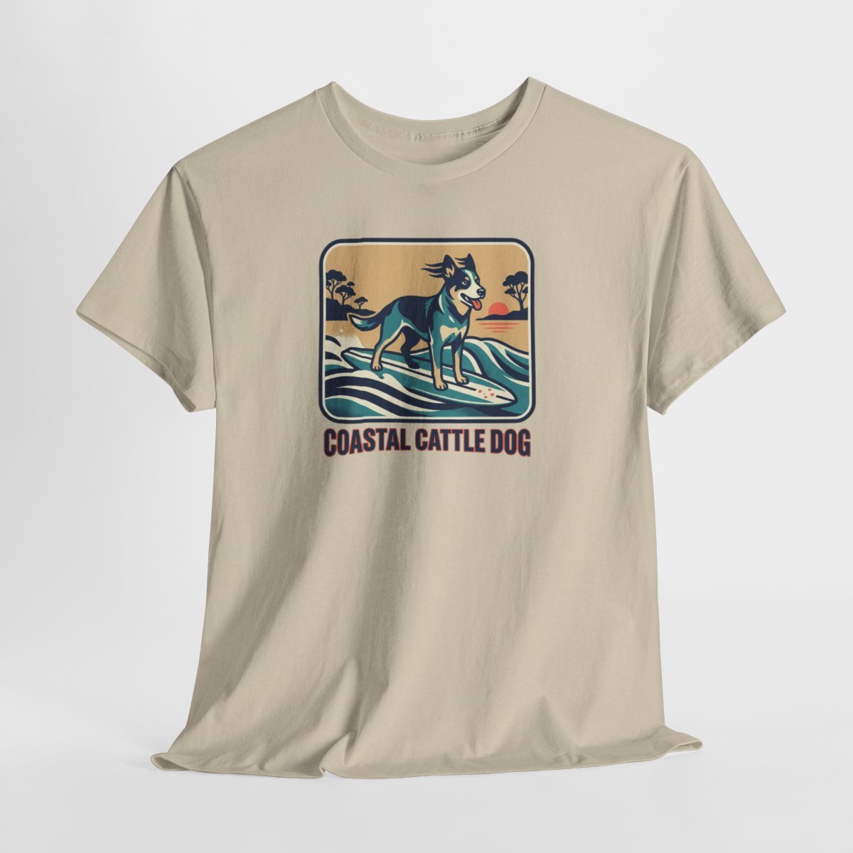 Coastal Cattle Dog Tee — Retro Surf Dog Graphic T‑Shirt