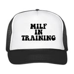 Stand out with attitude and comfort — the MILF IN TRAINING trucker hatBold statement, clean design: A crisp front-panel logo that says what you mean without shouting. The classic trucker silhouette keeps the look timeless and instantly recognizable.All-day comfort: Breathable mesh back, adjustable snap closure, and a structured crown for a flattering fit that stays comfortable whether you're out running errands or heading to a weekend event.Built to last: Durable stitching and quality materials hold up wash after wash while keeping the print sharp and fade-resistant.Versatile styling: Pair it with denim and a tee for casual flair, or add it to athleisure or festival outfits for playful confidence.Perfect for gifting: A fun, cheeky present for friends with a sense of humor or anyone who loves bold accessories.