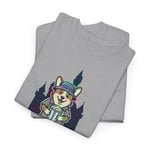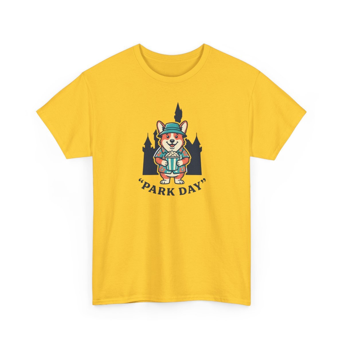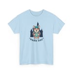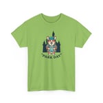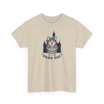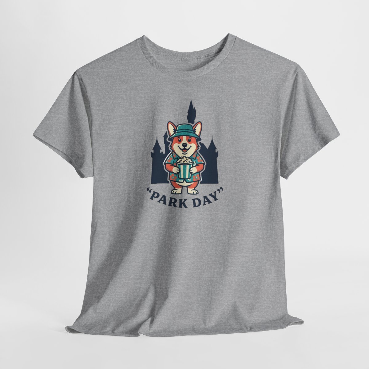 Soft, sturdy, and quietly playful — this cotton tee carries a small adventure on the chest. A smiling corgi in park-ready gear stands against silhouetted pines, the words “Park Day” curving underneath. The breathable medium-weight fabric and smooth print let the artwork stay crisp while you move, hike, or linger on a bench with a warm drink. It settles into daily life easily: layer it under a flannel, wear it with canvas shorts, or pack it for a weekend escape. The neutral natural color with subtle flecks gives the design a lived-in, outdoorsy feel that blends with trail tones and city sidewalks alike.