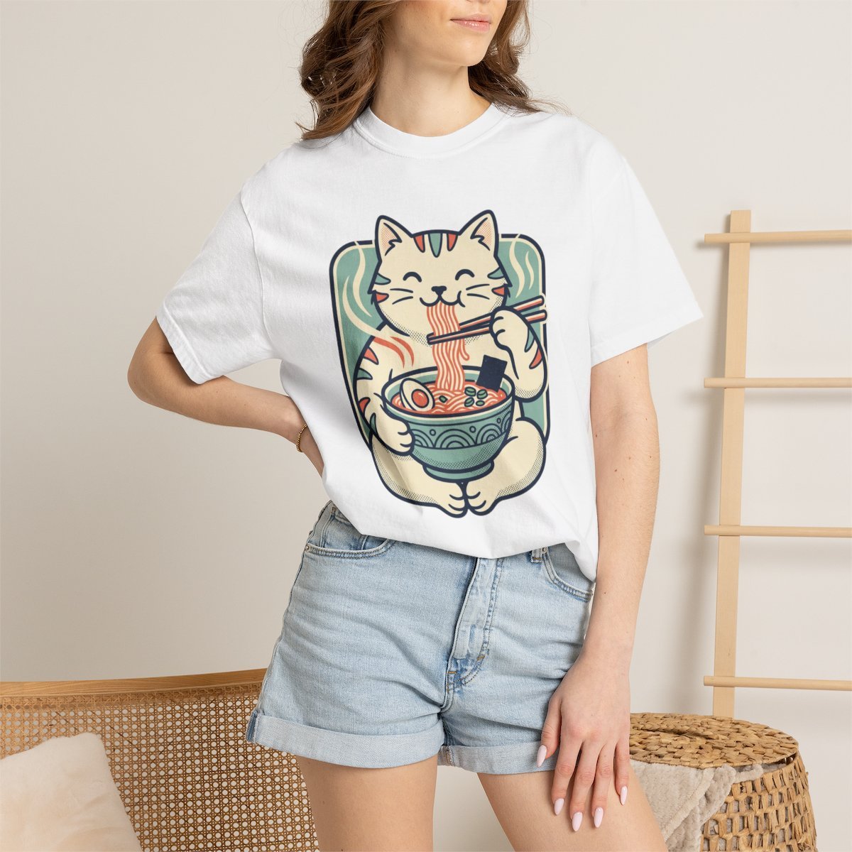 Ramen Cat T-Shirt — Cute Maneki Neko Eating Ramen Graphic Tee