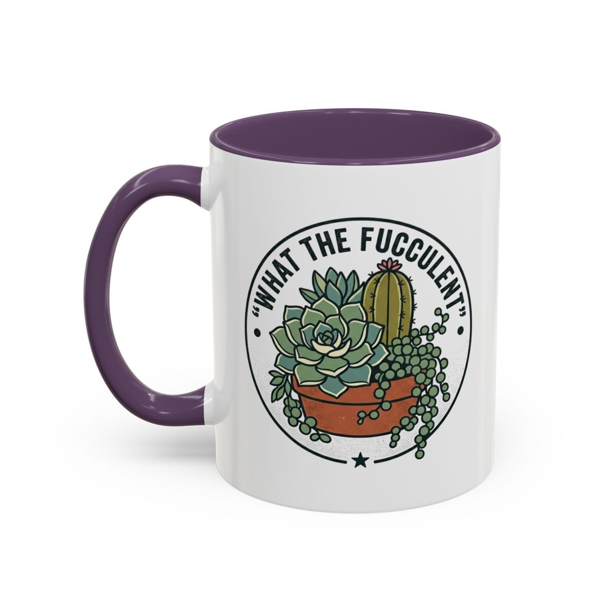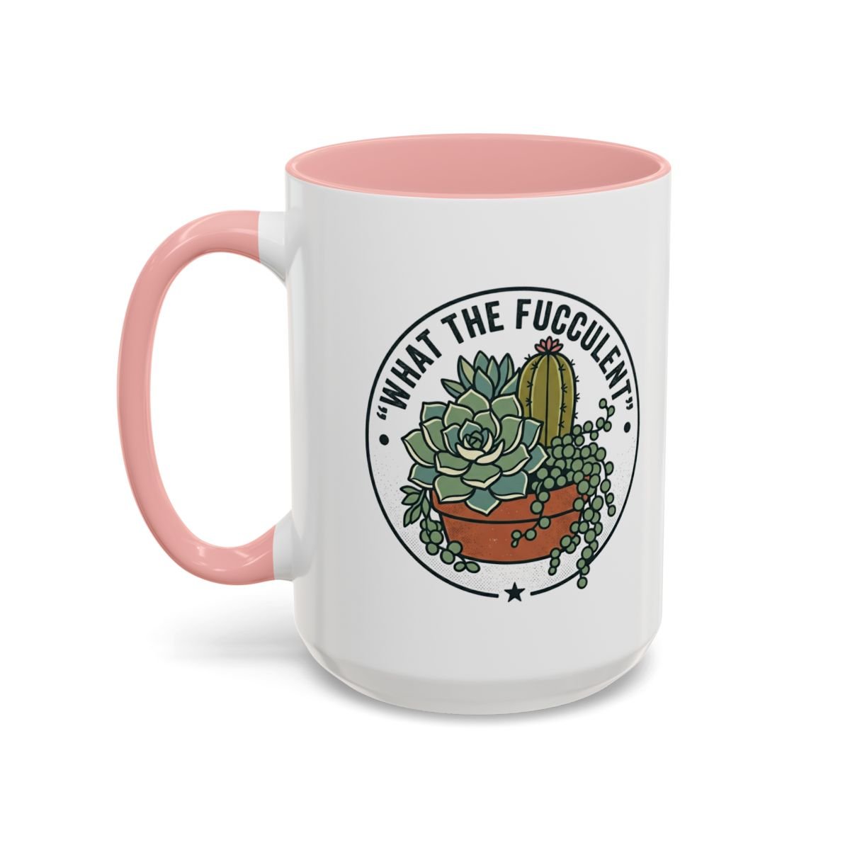 Resilient Cactus Accent Coffee Mug – Black Handle & Rim, 11/15oz