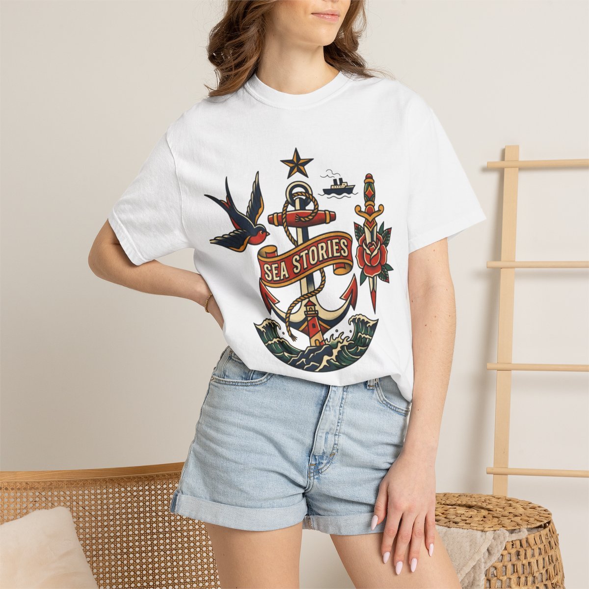 Sea Stories Anchor T-Shirt — Nautical Tattoo-Inspired Graphic Tee