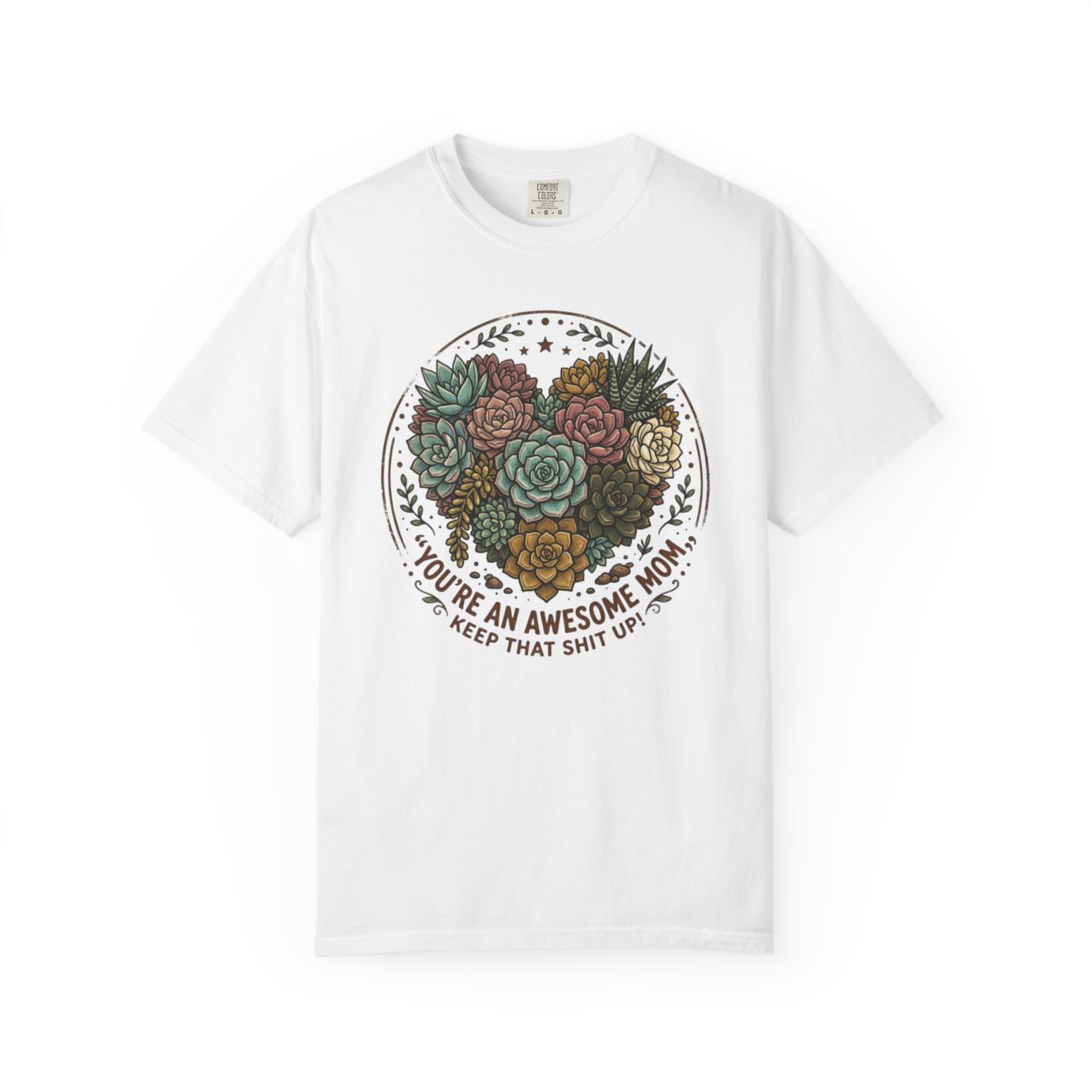 Soft, lived-in comfort meets quiet, clever charm. This heavyweight garment-dyed tee wears like an old favorite from the first wash — the cotton breathes, the relaxed cut drapes easily, and the muted dye gives each shirt a subtle, vintage feel. On the front, a heart-shaped cluster of succulents frames a cheeky, supportive message that feels like a private high-five: warm, slightly irreverent, and rooted in everyday life. It slips into morning coffee routines, plant-shelf Sundays, and backyard hangouts with equal ease. For someone who cares for greenery, dry humor, and clothes that don’t fuss, this tee becomes part of the rhythm: comfortable, honest, and a little bit tender.
