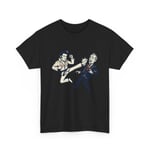 A soft, classic tee that tells a story on your chest. This comfortable cotton shirt features a lively illustrated scene—retro-styled figures locked in a playful, action-packed moment—printed with crisp, detailed techniques that keep the art bold wash after wash. It sits with a relaxed, timeless cut so the graphic reads clearly whether you’re out with friends, at a casual gig, or layering it under a jacket. The breathable fabric, tear-away label, and reinforced collar feel like a reliable staple you’ll reach for when you want to show off personality without shouting. Made with responsible materials and careful printing so the design and the shirt last together.
